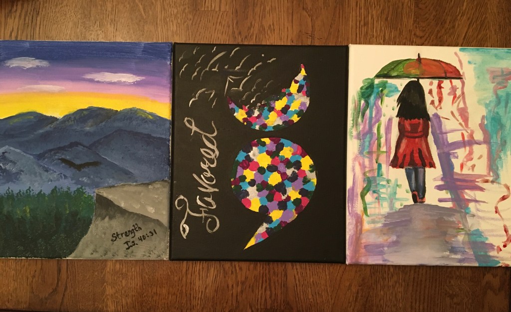 After two and a half hours, we were finally ready to reveal our paintings to each other and share their deeper meanings. My friend shared hers with my sister first, reminding my sister how favored she was by God. Her painting and words struck a chord in me, because I knew how meaningful they would be to my sister.