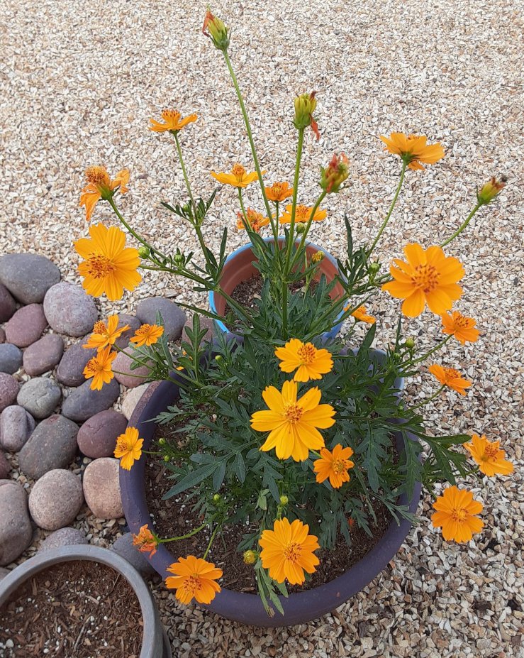 The potted plant in my backyard that I blogged about several posts back is really beginning to bloom, leaving me equally delighted and surprised each morning with all the new blossoms bursting forth.