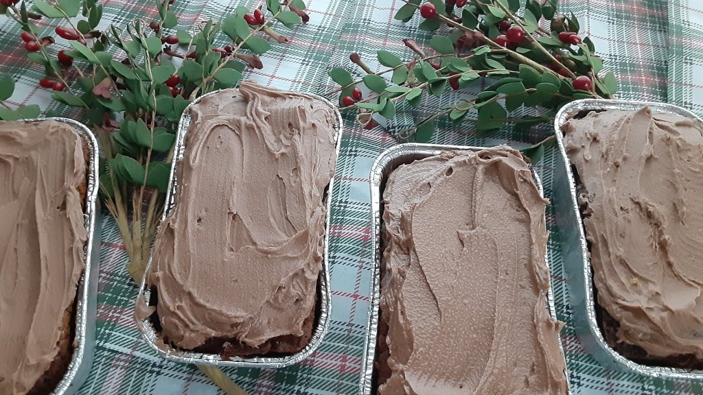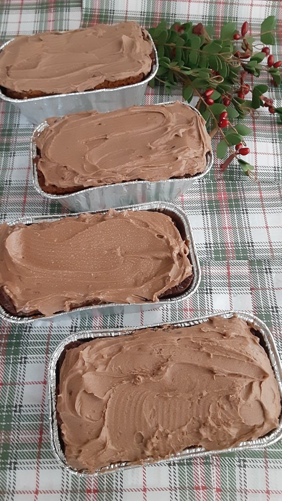 For the Nutella buttercream, beat together the Nutella and butter, then add the powdered sugar and milk and beat until smooth. Once the mini loaves are completely cooled, they can be removed from the loaf pan and frosted with the buttercream according to taste (I had leftover buttercream once I finished frosting mine). Or, if giving as a gift, place in disposable loaf pans and frost. Makes four mini loaves.