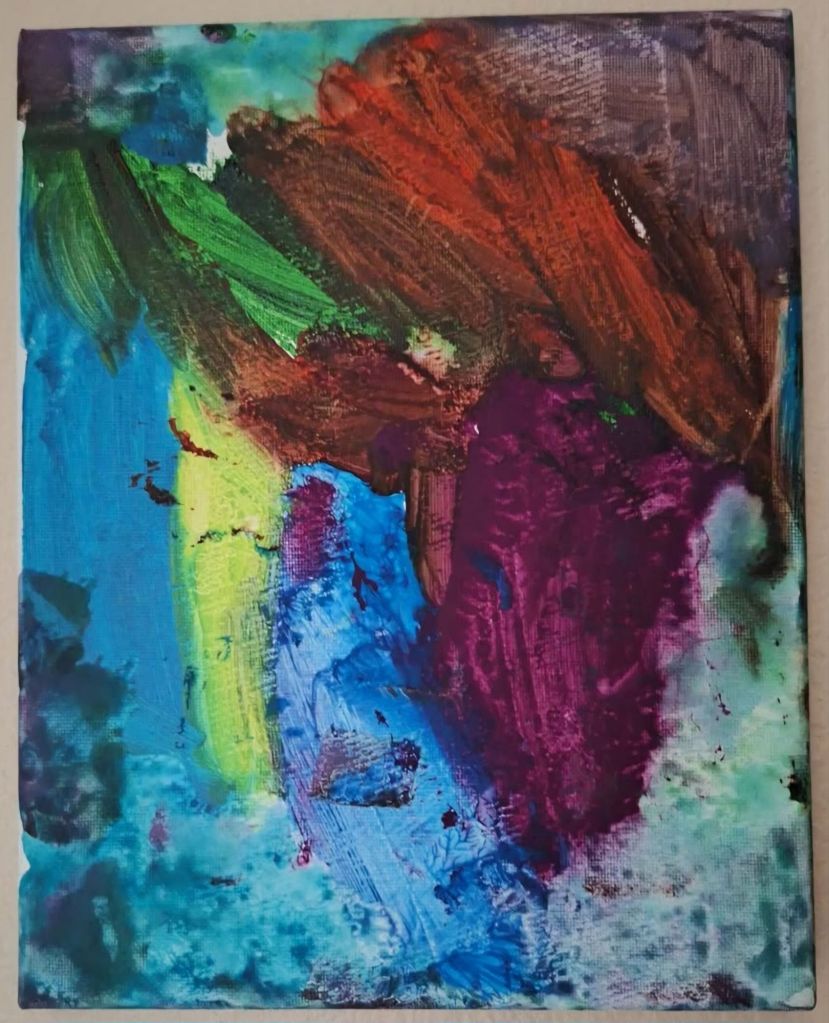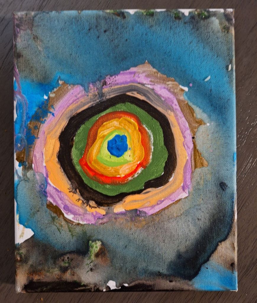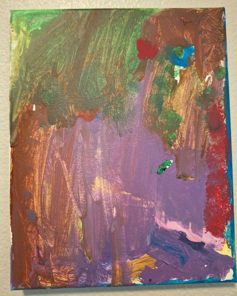 It was a sweet gesture, although nearly impossible as I had not been doing much artwork as of late. Nonethless, I pulled out the one piece of art that I could claim as my own, and that seemed to appease him for the time being, so the remaining canvases stayed on the walls. Today, the walls get fuller as he continues to paint, making this place feel more like a home. I’m glad I had a painting of my own to hang on the wall that day, because that was all it took to come to where we are today. He just needed me to be a part of what he was doing. He didn’t want all the attention or to do it alone.